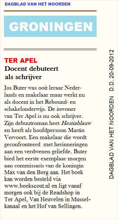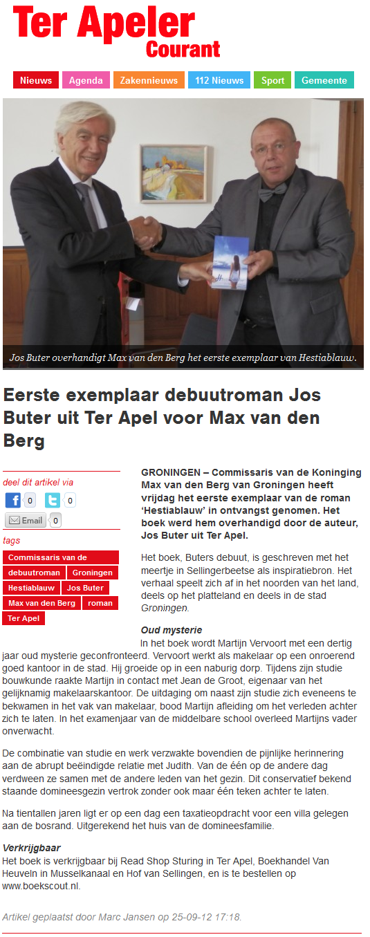 Samenvatting Martijn Vervoort is bouwkundige en makelaar in de stad. Tijdens zijn studie bood Jean de Groot, eigenaar van een makelaarskantoor, hem een baan aan. Dit werk bracht Martijn de mogelijkheid om het verleden achter zich te laten. Studie en werk verzwakten de pijnlijke herinneringen aan de abrupt beëindigde relatie met Judith. Samen met haar familie verdween ze van de één op de andere dag, zonder een spoor achter te laten. Na tientallen jaren ligt er op een dag een taxatieopdracht voor een villa gelegen aan de bosrand. Uitgerekend het huis van de domineesfamilie, waar Judith en haar familie deel van uit maakten. ISBN: 9789462062764 Wietse de Roo was op bezoek in de studio en maakte onderstaande beelden. Onze dank daarvoor.